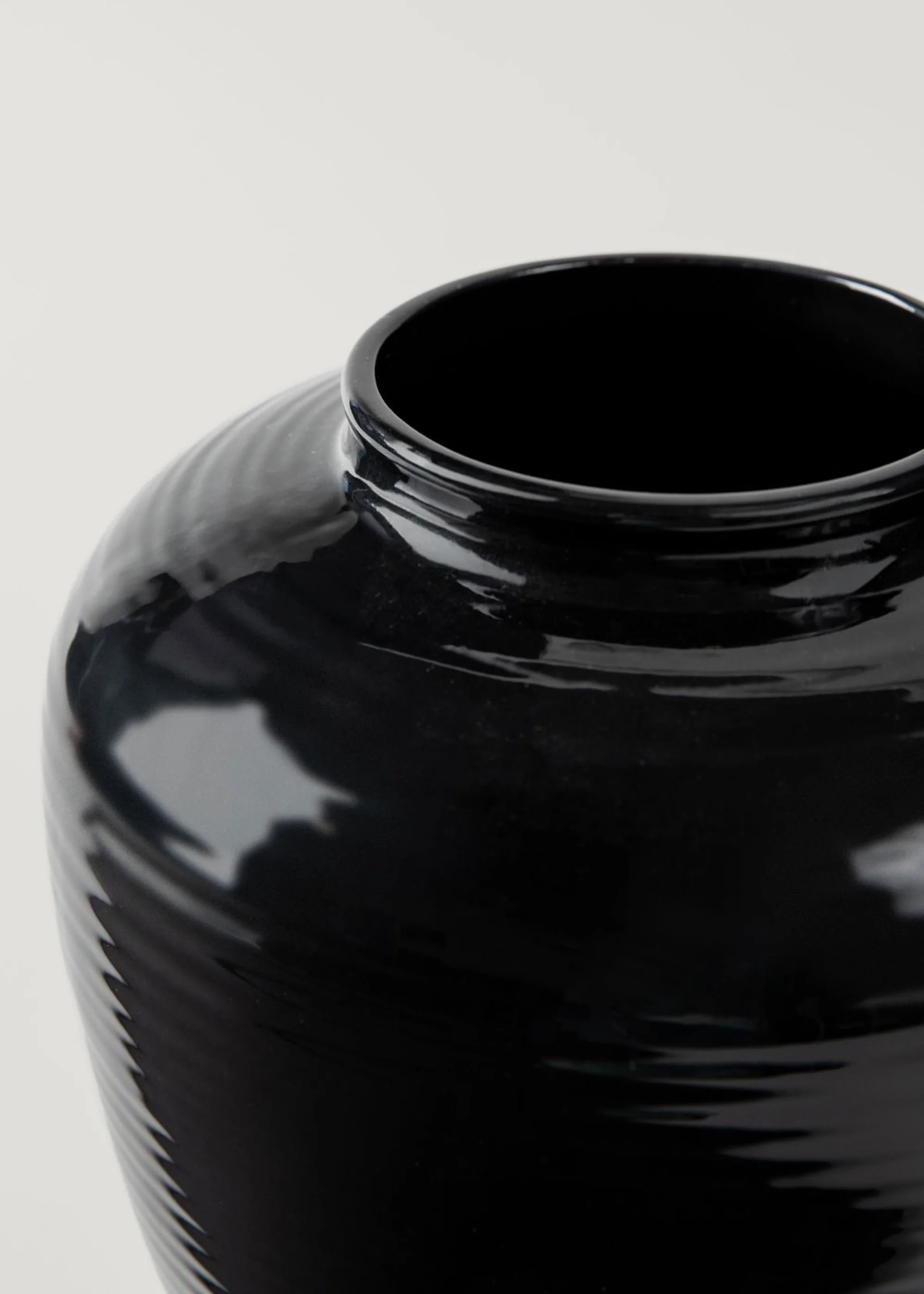 Glazed Afloral™ Ribbed Stoneware Table Vase in Noir - 8"